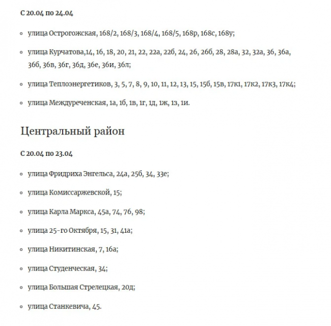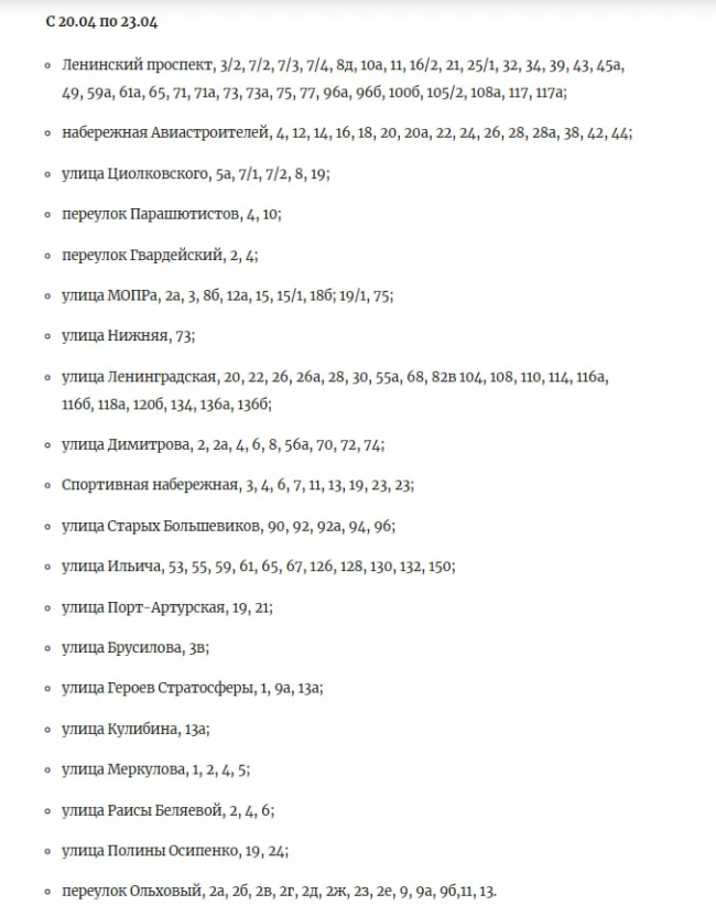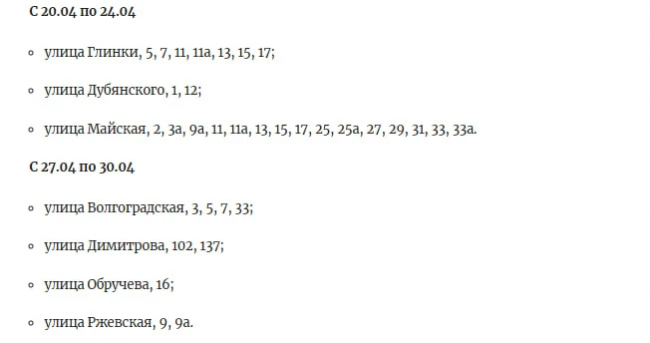 Точные сроки начала и окончания работ различаются в зависимости от адреса.