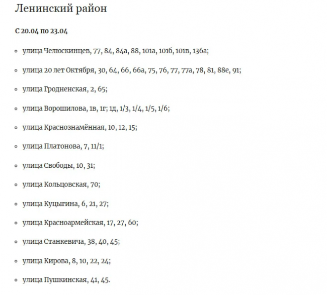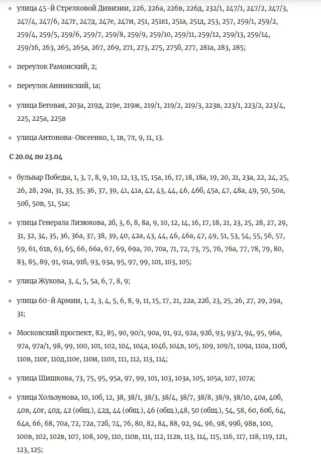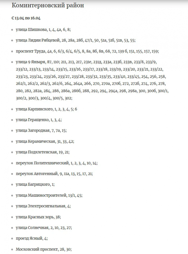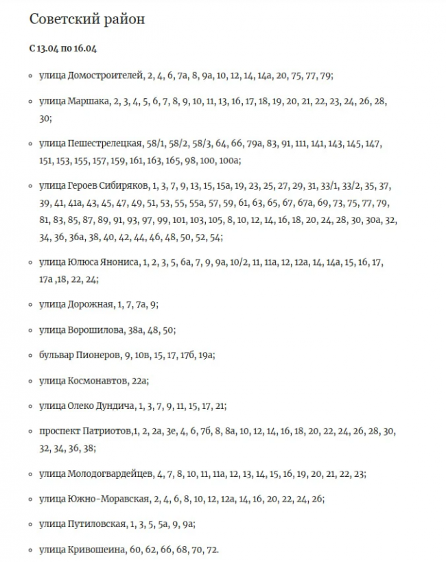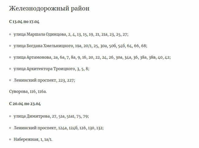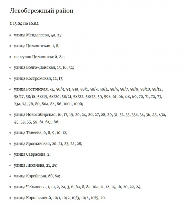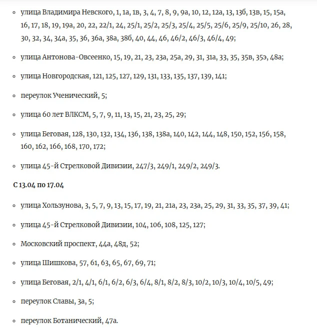 Точные сроки начала и окончания работ различаются в зависимости от адреса.